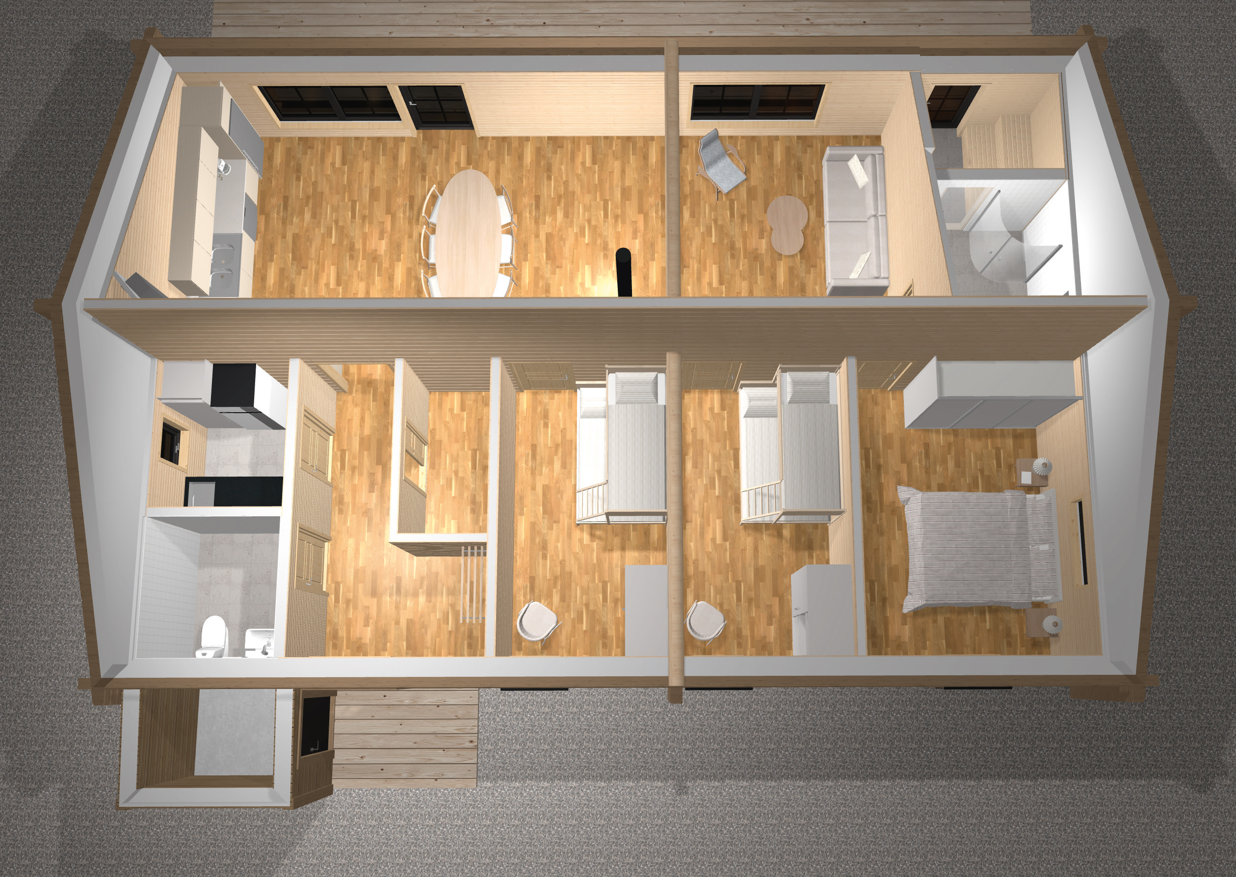 För att undvika onödiga överraskningar för dig som kund levereras huset komplett, där allt ifrån kök till elinstallationer ingår. Interiören präglas av hög standard och noggrant utvalda materialval. De synliga timmerväggarna skapar en varm och ombonad atmosfär. För att göra din byggresa så smidig som möjligt levereras Villa Norrsken även med färdiga bygglovshandlingar. Här sparar du både tid och energi i den inledande byggprocessen. Med professionellt utformade ritningar och dokument är du ett steg närmare drömboendet redan från dag ett.